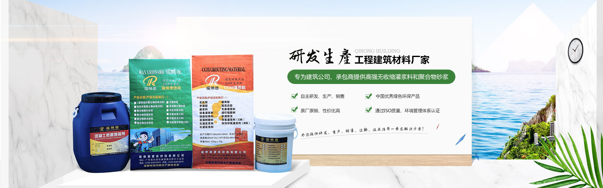 東莞市戚榮建筑材料有限公司是東莞市瑞納德建筑材料有限公司旗下子公司,是一家集研發(fā)、生產(chǎn)、銷售、技術(shù)服務(wù)為一體的技術(shù)型企業(yè),,并通過ISO9001:2000質(zhì)量管理體系及ISO14001:2004環(huán)境管理體系世界標(biāo)準(zhǔn)認(rèn)證。現(xiàn)已在廣東、浙江、北京、河南鄭州、沈陽、重慶等均有生產(chǎn)基地。